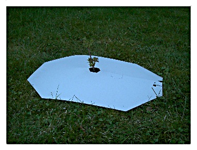 ca. 1,5 mm starke vegetationshemmende Kartonplatte, die für 2 - 3 Jahre lästigen Begleitwuchs im Wurzelbereich frisch gesetzter Pflanzen wirksam verhindert.