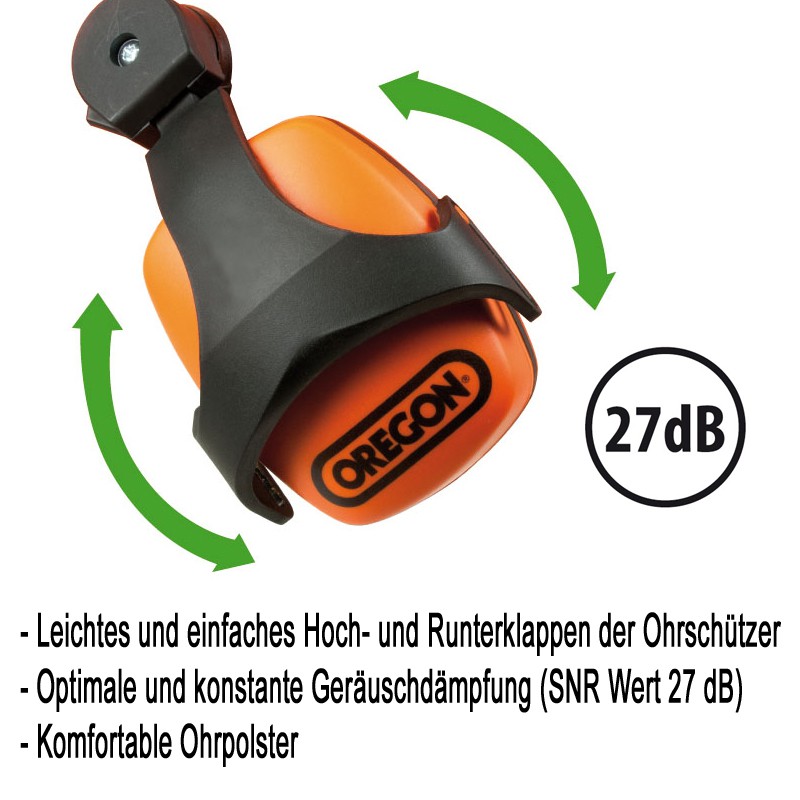 über komfortable leistungsstarke Ohrschützer und ein Visier mit Gitternetz aus rostfreiem Stahl.