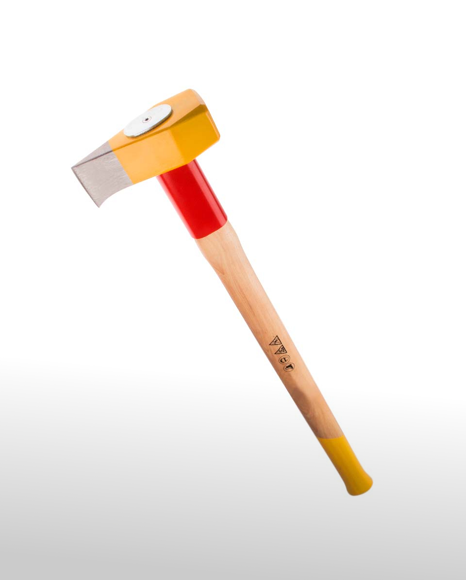 Geschmiedeter Hammerkopf mit Wendenase und großer Schlagfläche (z. B. zum Eintreiben von Keilen) und Schneidenschutz. 3000 g